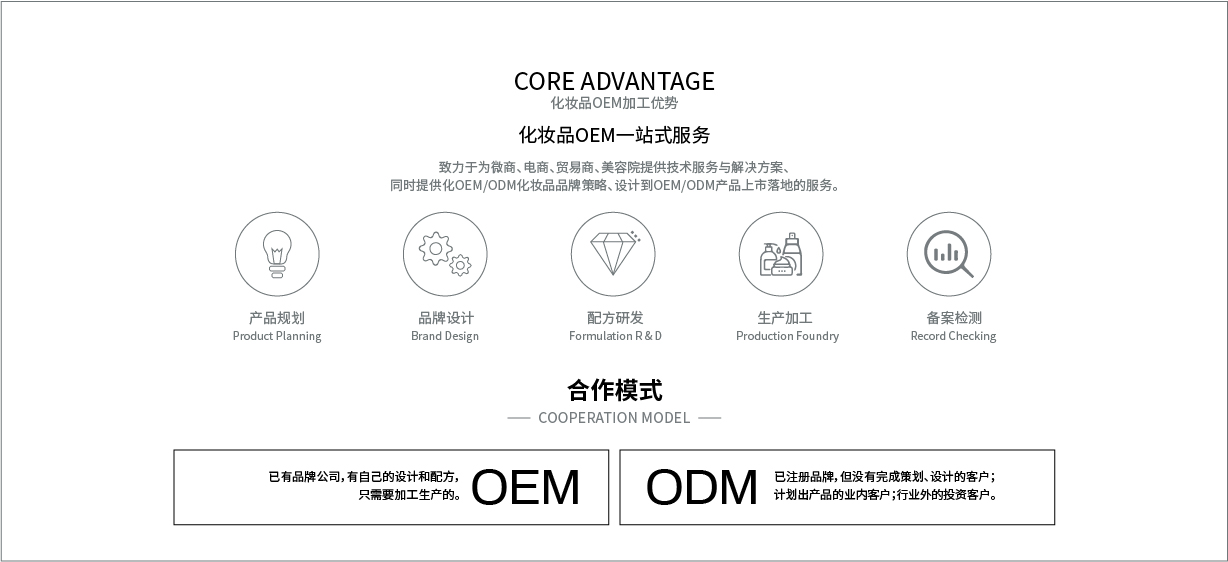 公司始創(chuàng)建于2012年,經(jīng)過八年的健康發(fā)展,已經(jīng)成為可以從事妝字號(hào)、消字號(hào)、械字號(hào)等系列產(chǎn)品生產(chǎn)加工的大型企業(yè)。企業(yè)坐落在美麗的廣州白云區(qū)鐘樓潭鎮(zhèn),擁有面積超過15,000平方米的生產(chǎn)廠房。廠房寬敞明亮,設(shè)計(jì)科學(xué)新進(jìn),擁有十萬級(jí)的生產(chǎn)車間,局部環(huán)境可以達(dá)到一萬級(jí)別;設(shè)備多采用新進(jìn)的進(jìn)口設(shè)備,自動(dòng)化程度非常高,擁有一流的生產(chǎn)設(shè)施。工廠同時(shí)通過了ISO22716和GMCP質(zhì)量管理認(rèn)證,擁有一流的質(zhì)量管理體系。廠